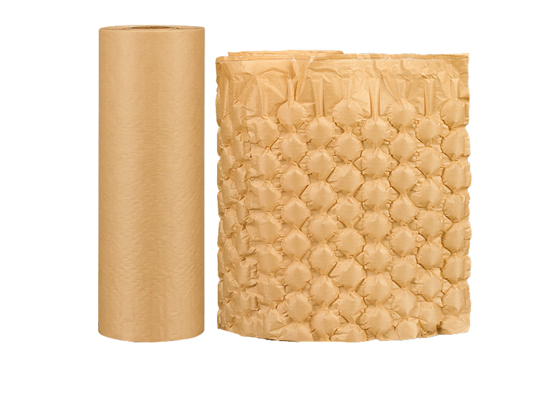 BioAir 紙葫蘆膜(紙Wrapper)(Void fill Paper bubble)是將全生物降解薄膜與牛皮紙兩種環保材料用獨特工藝緊密貼合制成,是一種新型完全可降解材料,可通過歐盟ok compost降解認證,堆肥條件下6個月內90%以上降解轉換成水和二氧化碳。相比全生物降解葫蘆膜,紙葫蘆膜除了美觀外還具有優越的耐穿刺性能;使用時經過經典型氣墊機CA3充氣熱封后,用于包裝容器內產品的裹包、鋪墊及空隙填充,起到緩沖減震,產品固定作用,確保產品運輸安全。可定制尺寸和顏色(黑色、粉色、本色)等。